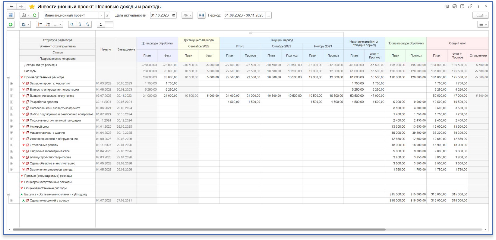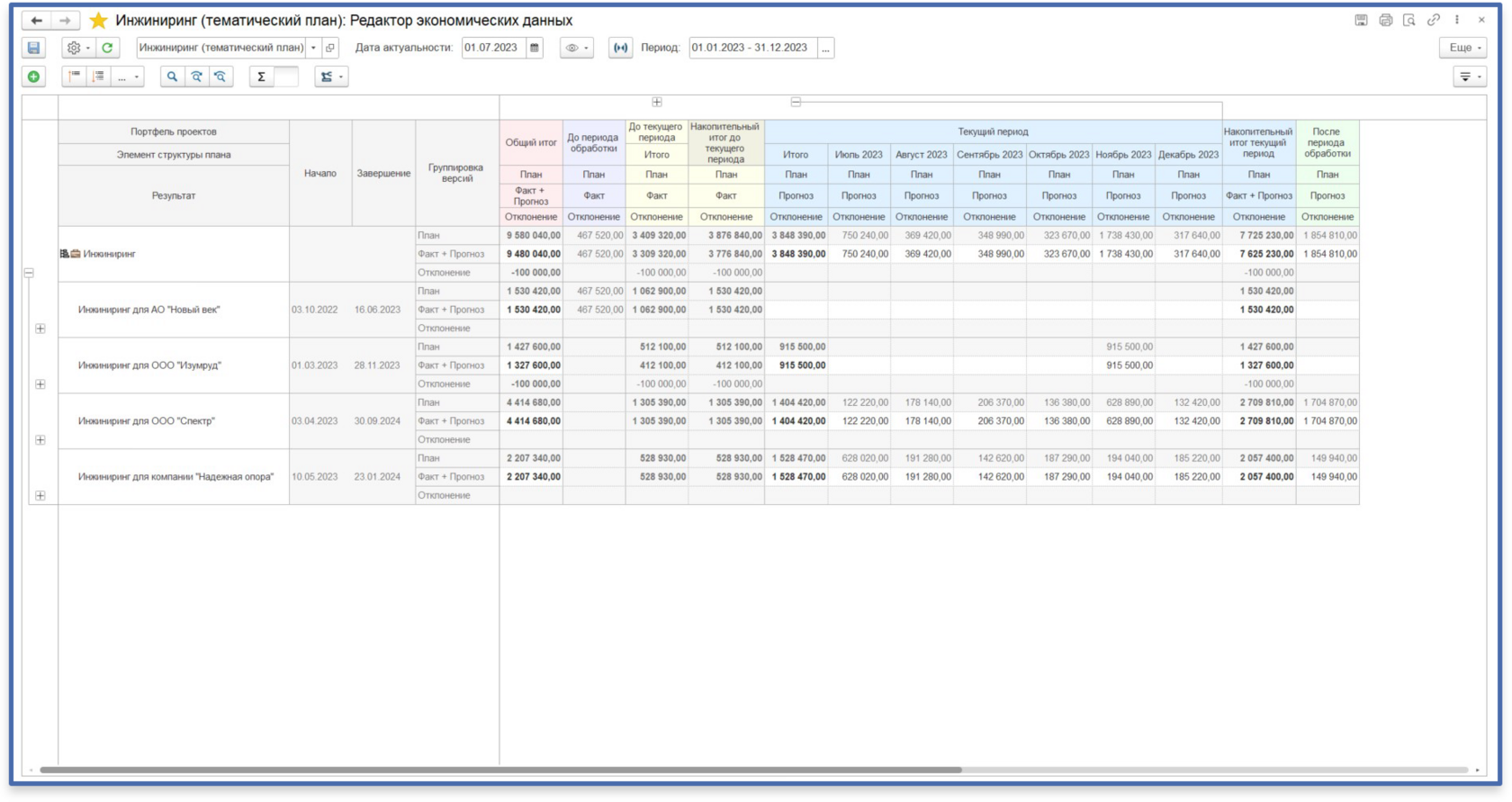 Периоды редактора (период проекта, текущий период и период обработки; разные периоды в группировках)
