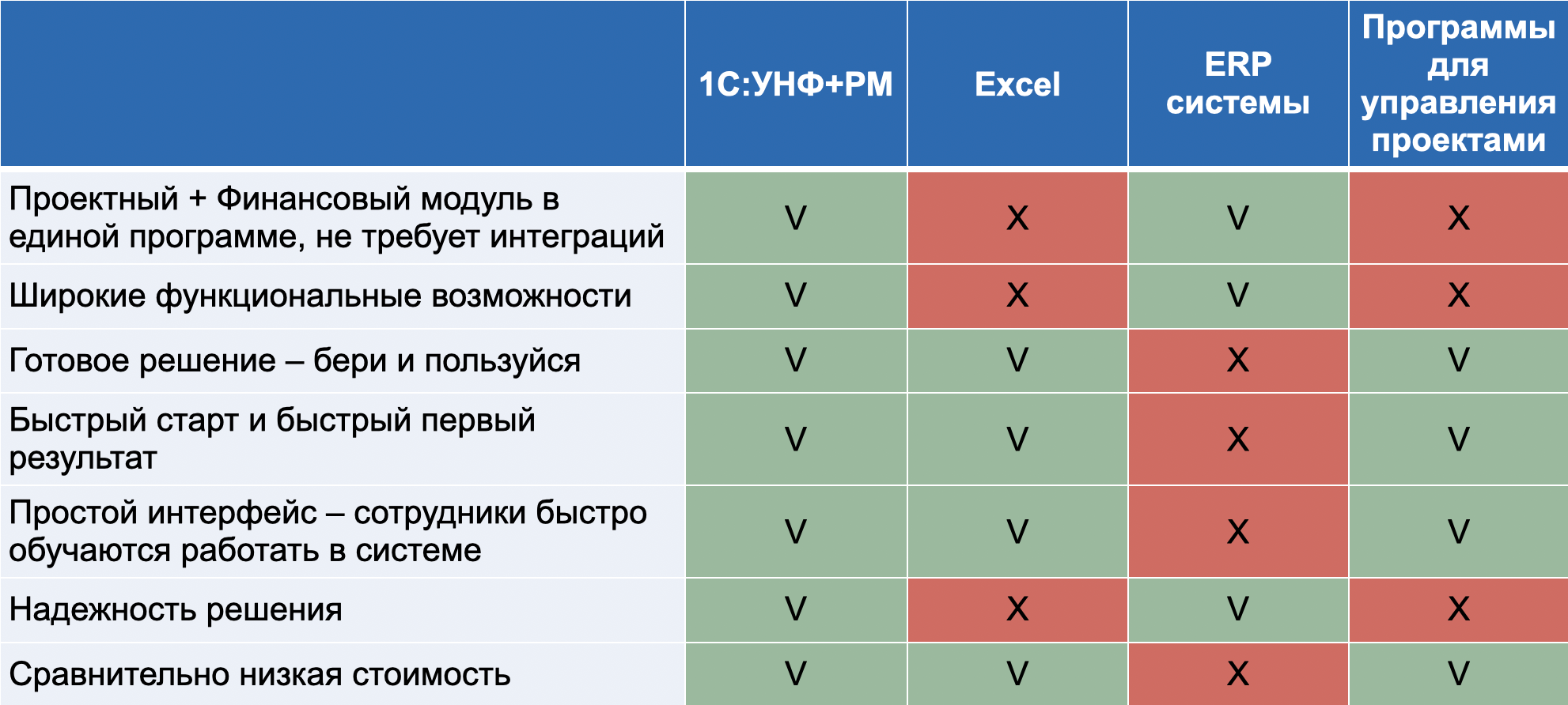 Преимущества «1С:УНФ+РМ» в сравнении с другими программами