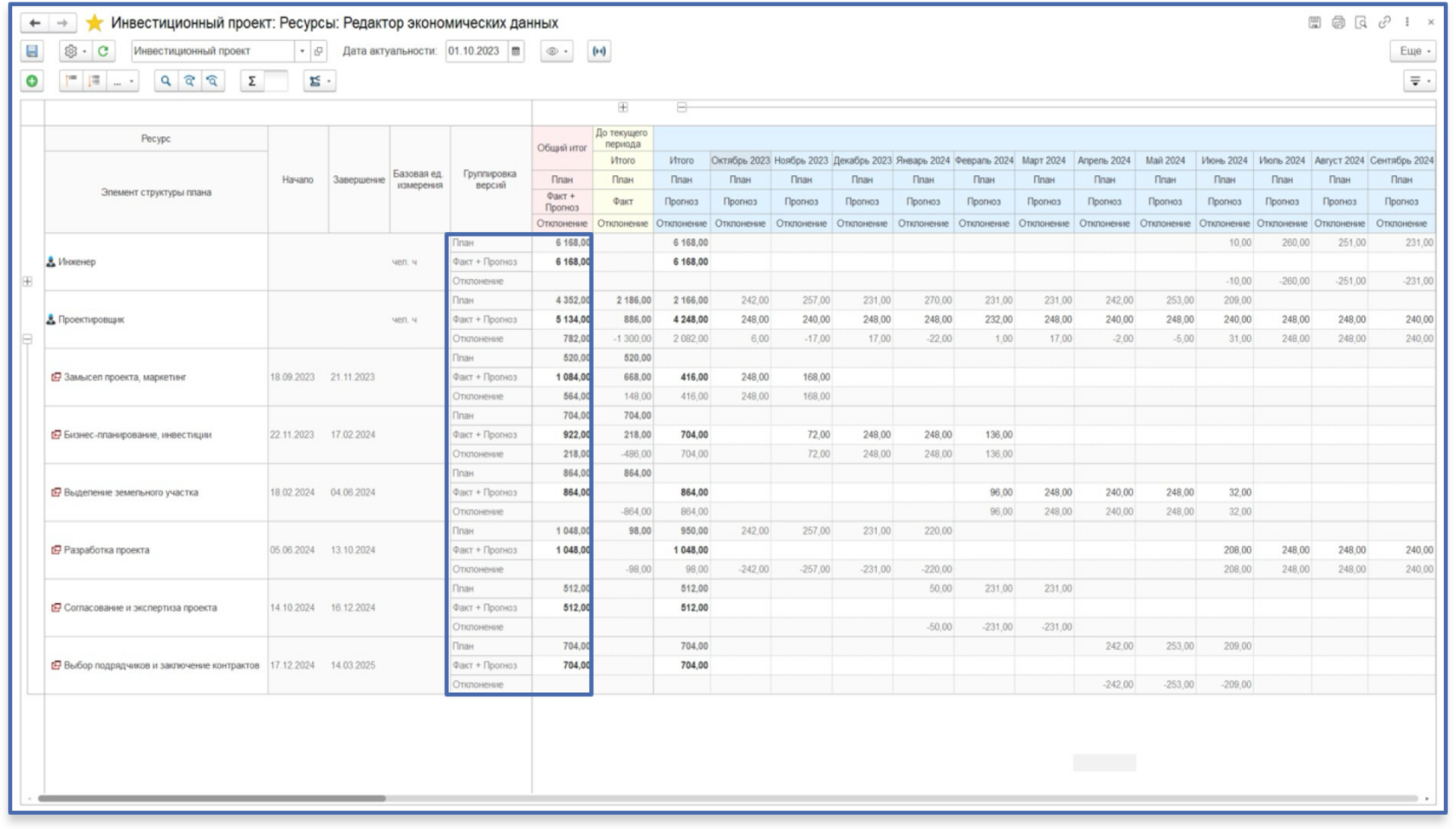 Формирование БДР проекта на основании ресурсных планов и плана объемов