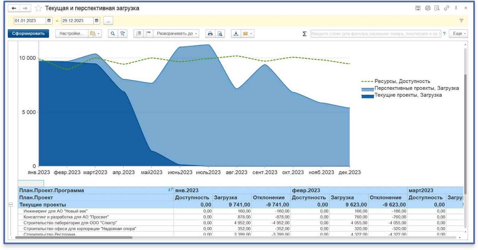 Долгосрочное планирование объемов по текущим и перспективным проектам.